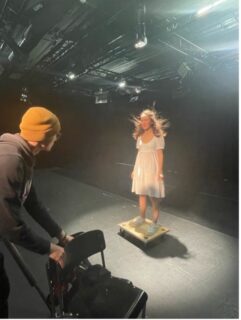 Nach ausgiebiger Planung des Drehs und einigen Testaufnahmen folgte der finale Drehtag. Für diesen haben wir noch weitere Personen engagiert. Darunter eine Make-up-Artistin (Lara Koçöz), die unsere Hauptdarstellerin (Juliette Kauflin) gestylt hat. Zudem hatten wir noch Unterstützung von Oliver Bumann, der die Rolle der technischen Assistenz übernahm.