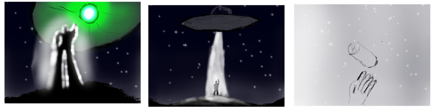 Als das geklärt war, kam natürlich die Frage auf, um was es in diesem Werbespot gehen soll. Nach einer langen Brainstorming-Session haben wir uns für ein ausserirdisches Thema entschieden. Wir wollten uns mit der UFO-Thematik von der breiten Masse an Werbung abheben und auffallen. Uns ist bewusst, dass wir mit dieser Strategie nicht das Interesse der grossen Firmen wecken werden, da UFOs meistens nicht in die Corporate Guidelines passen. Da wir mit dieser Werbeaktion vor allem kleine bis mittelgrosse Unternehmen ansprechen möchten, haben wir dies in Kauf genommen.
